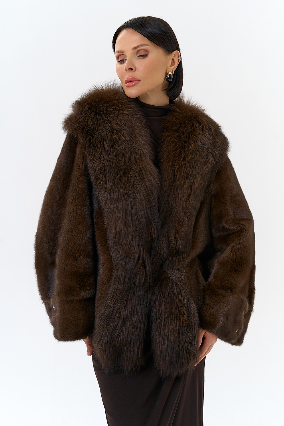 Тип ворота - V- образный, отделка чернобурка